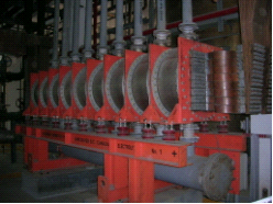 復(fù)極式氯酸鹽電解槽型號 FG-II40 FG-II60 FG-II80 FG-II120 FG-II160 電解面積 40M2 60M2 80M2 120M2 160M2 陽極材料 MMO/TA1 MMO/TA1 MMO/TA1 MMO/TA1 MMO/TA1 陰極材料 防鼓泡陰極 防鼓泡陰極 防鼓泡陰極 防鼓泡陰極 防鼓泡陰極 設(shè)計(jì)電流密度 2000-2500A/M2 2000-2500A/M2 2000-2500A/M2 2000-2500A/M2 2000-2500A/M2 電極距離 2.5mm~3mm 2.5mm~3mm 2.5mm~3mm 2.5mm~3mm 2.5mm~3mm 陽極涂層 五元納米涂層 五元納米涂層 五元納米涂層 五元納米涂層 五元納米涂層 陽極壽命 >6年 >6年 >6年 >6年 >6年 氧含量 <3% <3% <3% <3% <3% 電流效率 >93% >93% >93% >93% >93% 殼體材料 碳鋼、鈦 碳鋼、鈦 碳鋼、鈦 碳鋼、鈦 碳鋼、鈦 導(dǎo)電板 三層復(fù)合導(dǎo)電材料 三層復(fù)合導(dǎo)電材料 三層復(fù)合導(dǎo)電材料 三層復(fù)合導(dǎo)電材料 三層復(fù)合導(dǎo)電材料 氯酸鹽產(chǎn)量 360噸/年 540噸/年 720噸/年 1100噸/年 1450噸/年 直流電耗 <4900kw/噸 <4900kw/噸 <4900kw/噸 <4900kw/噸 <4900kw/噸